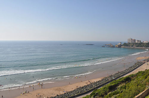 こちらはバスク地方、大西洋の海岸。夕暮れにきらめく波。