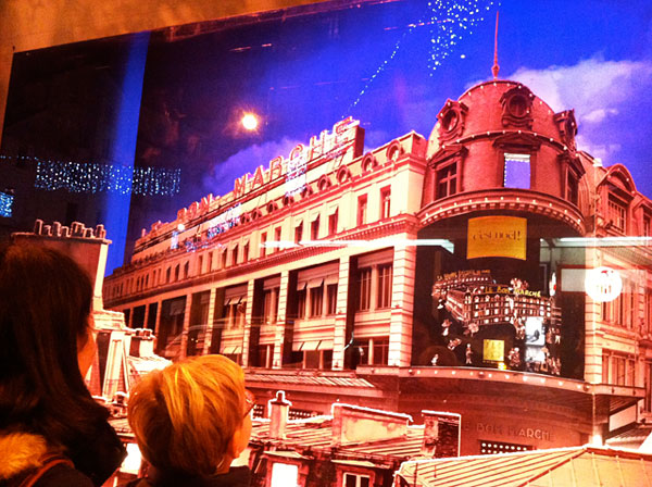 Le bon marché ボンマルシェのウィンドーを見入る親子