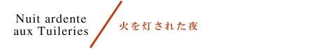 チュイルリー公園/Jardin des Tuileriesの中、コンコルド広場からルーブル美術館を結ぶ道に沿って2000個もの炎がともされた。炎の光で照らされた赤みを帯びたミステリアスな世界。幻想的なムードでもあり、心も落ち着く、キャンプファイアの周りに集まった時のように。毎年10月の第一土曜日の日没から明け方にかけて夜通し行われるNuit Blanche/ 白夜 の一環。2002年にパリ市長の発案でスタートしたこのイベントでは、美術館やモニュメントのあるエリア、路上など数十箇所で現代アート関連のパフォーマンスやインスタレーション、ダンスなど様々なプロジェクトが披露される。イベントはその後、ブリュッセル、ローマ、リスボン、マドリッドなどヨーロッパの他の都市でも実施されるようになり、さらに、ニューヨーク、イスタンブール、上海と世界中に広がりつつある。