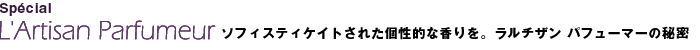 1976年、ラルチザン パフューマーは調香師Jean Laporteによってパリに生まれた。フランスのパルファンの伝統を重んじつつも、洗練され、斬新な香りの数々、