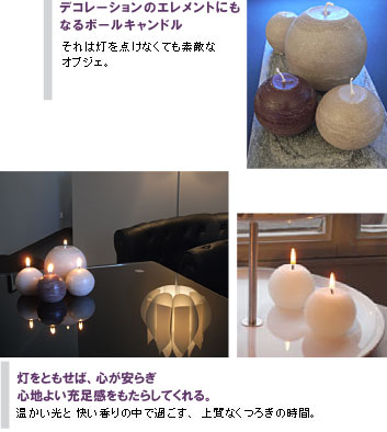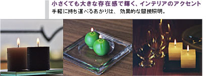 キャンドル関連のアイテムや活用シーンを紹介。 いつもと一味違う空気を創りだします。